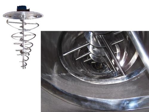 外部完整螺旋带可将动物材料随处携带。在卸料过程中,外螺旋带将粘性物料除去,而内螺旋将物料排出。结合倒置的锥形桶,即使是流动性较差的物料也可以快速排出而不会留下残留物。