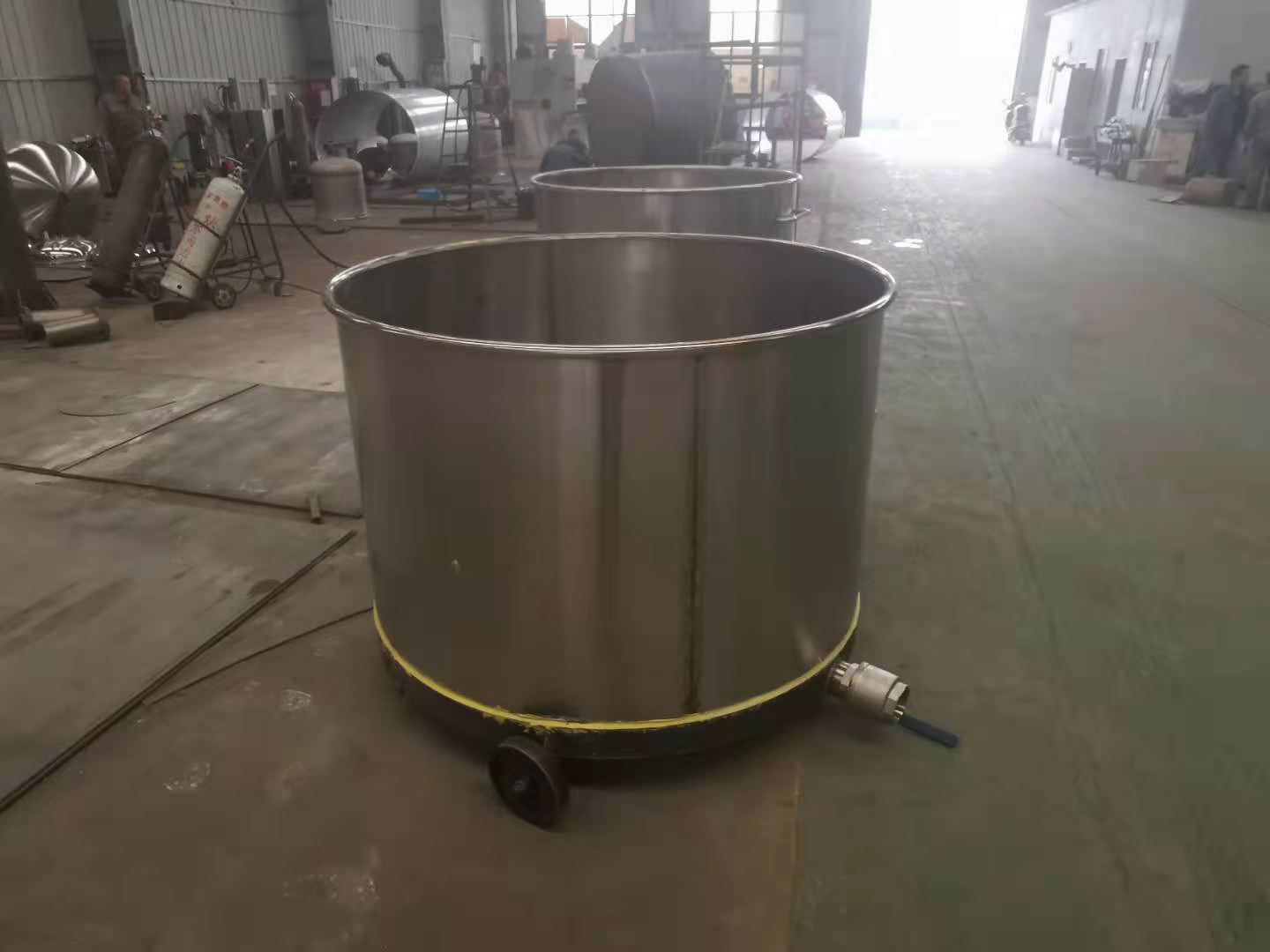 不锈钢缸也称为分散缸,移动缸,临时存储缸和油漆缸。它由一个不锈钢缸,一个手柄,一个加强环,一个安全阀,一个可动轮和一个自制动装置组成。它主要用于分散机,破碎机,乳化分散机和其他设备,例如小批量生产混合容器和仅临时存储小批量物料。