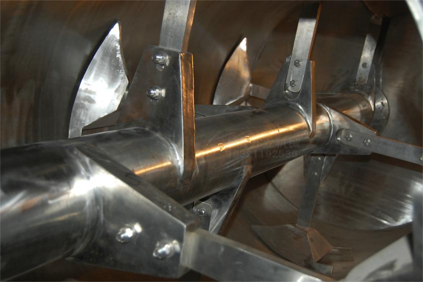 犁刀上的犁刀随主轴旋转,使物料沿筒臂作径向和圆周运动。同时,径向物料沿线流过飞叶组,被高飞叶抛掷。旋转速度飞刀瞬间实现均匀混合。犁头或斜铲安装在搅拌轴上。设备运行时,犁头的结构作用于物料颗粒在径向和纵向的圆周路径上的连续混合运动,避免了混合死角,从而保证了较高的混合精度。在这种混合器作用下的物料保持湍流原理。搅拌器的犁形和混合速度产生离心涡流运动,使受压材料在三维空间扩散并融合在一起。适用于干粉、颗粒和小块,低粘度灌浆。